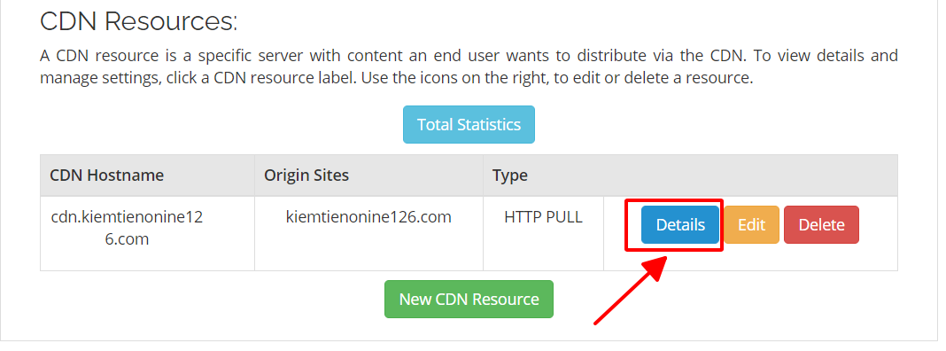 Click vào Detail của CDN Resource để xem các thông tin chi tiết.