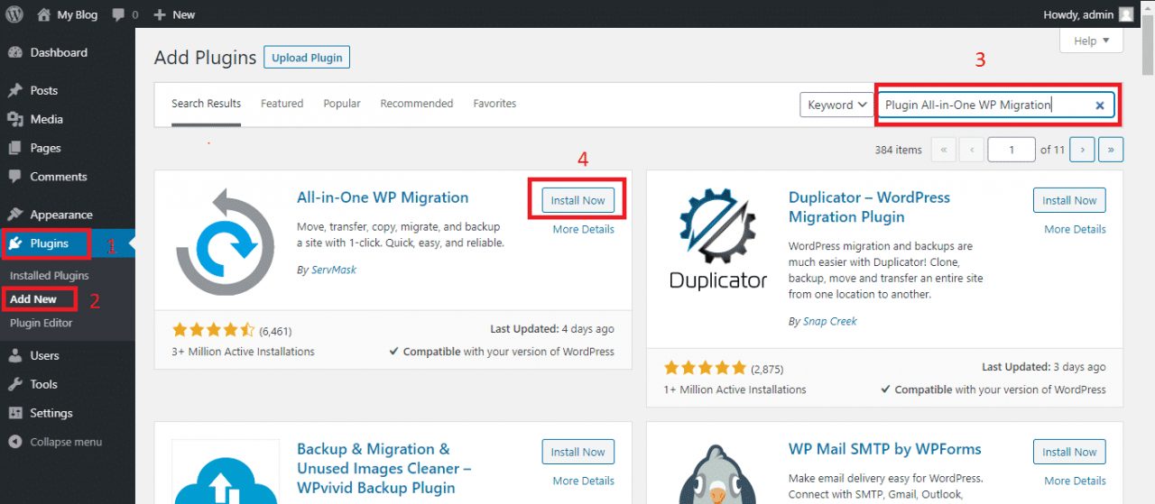 1.1. Cài đặt và kích hoạt Plugin All-in-One WP Migration