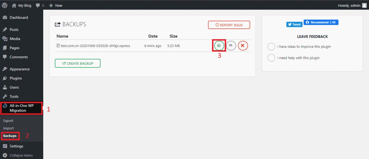 2.1. Cài đặt và kích hoạt Plugin All-in-One WP Migration tương tự như bước 1.1