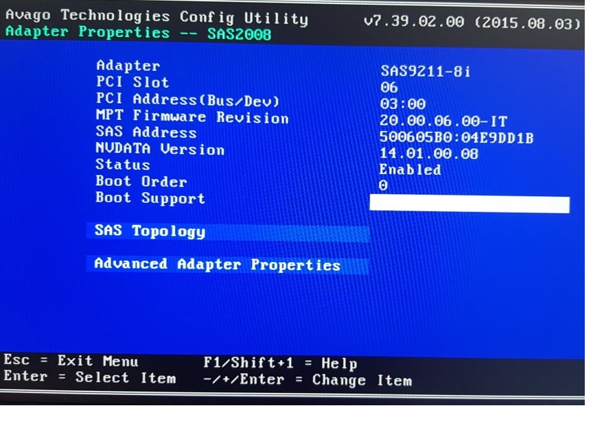 Nếu sau khi reboot, bạn thấy BIOS của HBA card hiện lên, nhấn Ctrl+C vào và lên như hình bên dưới thì xin chúc mừng, bạn đã Flash thành công: