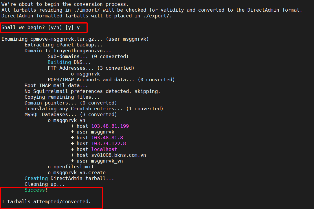 Bước 5: Bước này các bạn sẽ thực hiện module chuyển đổi file Backup từ cấu trúc dữ liệu Cpanel sang Directadmin.