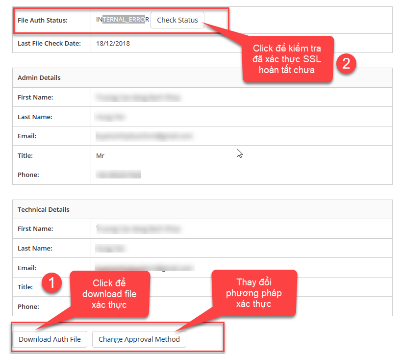 - Nhấp vào nút Dowwnload Auth file (1) tải file xác thực sau đó quý khách upload file này lên server/vps/hosting để có thể truy cập tại đường dẫn sau: