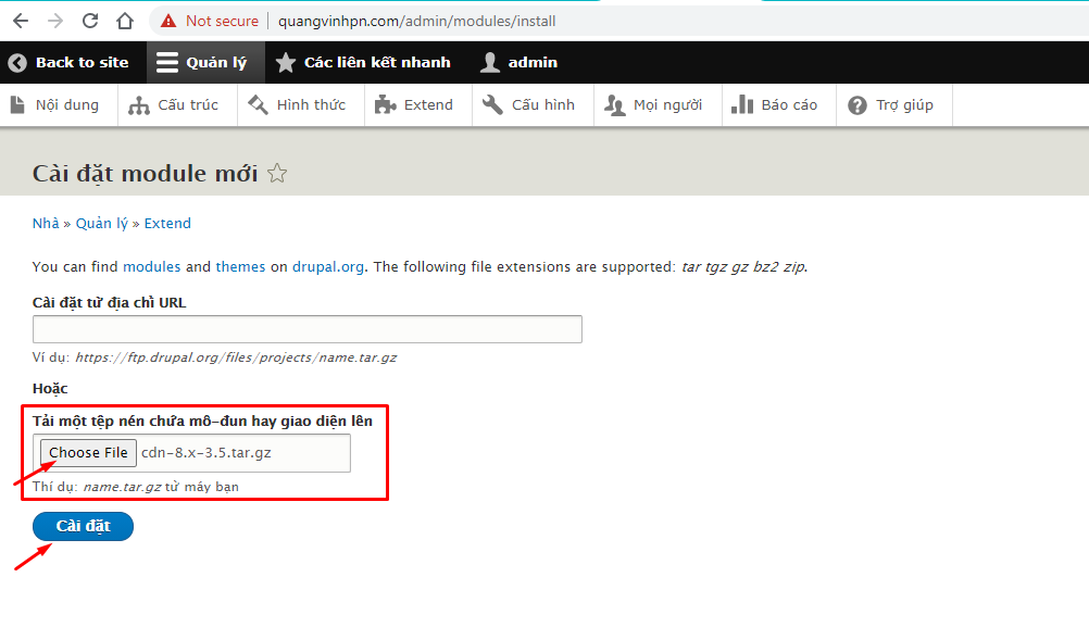 - Chọn tệp và tìm đến module CDN Drupal mà bạn đã tại xuống tại Bước 1.