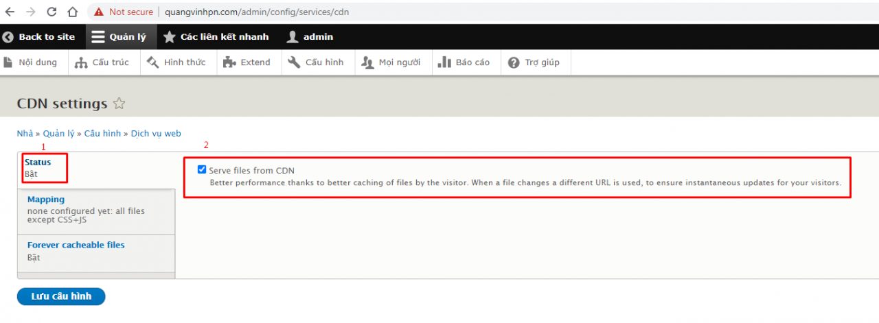 Như vậy là đã cài đặt thành công CDN cho website Drupal!