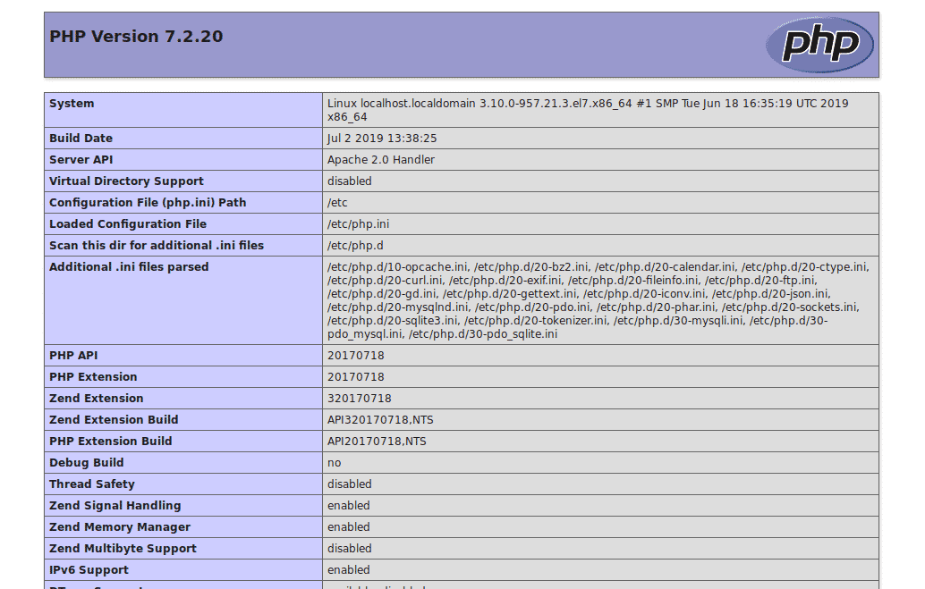 yum-config-manager --enable remi-php72 yum -y install php php-opcache php-mysql