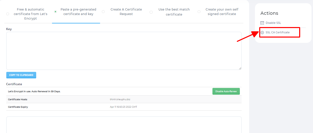 Bước 5: Nhấn vào SSL CA Certificate