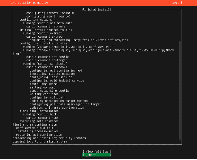 Chọn reboot hệ thống để hoàn thành! cài đặt
