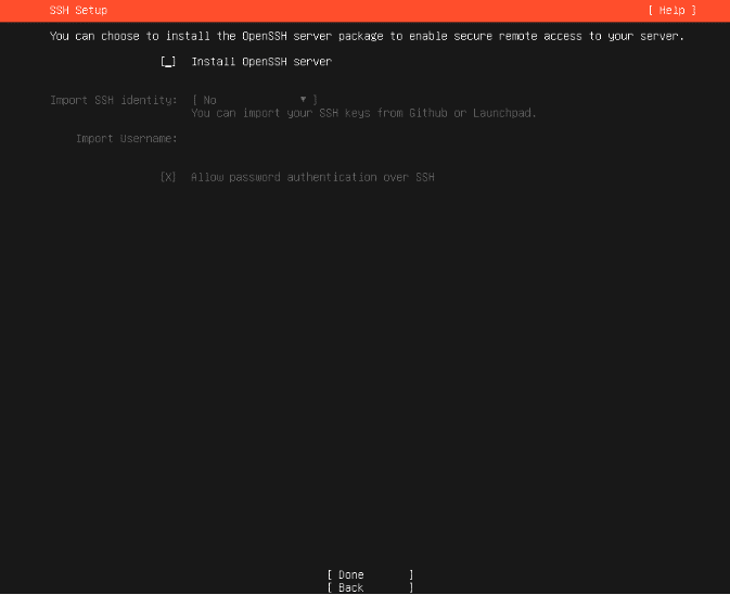 Lựa chọn có cài đặt dịch vụ SSH tích chọn để cài đặt