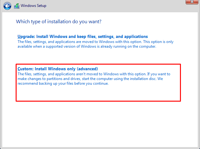 Bước 13. Chọn custom, tùy biến cho người dùng.