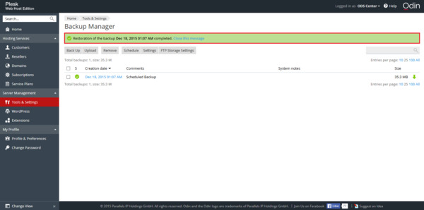 Đến đây, quá trình Restore trên Plesk Panel 12.5 đã hoàn tất