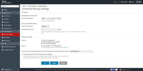 Hướng Dẫn Cấu Hình Backup & Restore Trên Plesk Panel 12.5