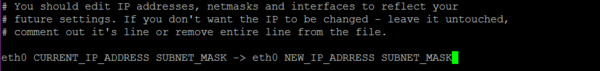 Chỉnh sửa thông tin IP trong file ipaddresses.map với câu lệnh vi ipaddresses.map như hình dưới. CURRENT_IP_ADDRESS là IP hiện tại của server Plesk, NEW_IP_ADDRESS là IP của sever cPanel.