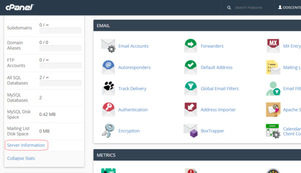 Nhấp chọn Server Information ở khung phía bên trái để hiển thị thông tin chung về server, bao gồm cả thông tin phiên bản của MySQL và PHP.