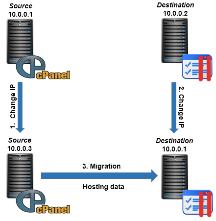 Ta sẽ đổi IP của server cPanel, sau đó đổi IP của server Plesk thành IP trước đó của cPanel. Tiến hành migrate dữ liệu trên cPanel sang server chạy Plesk. Ví dụ như trong hình bên dưới.