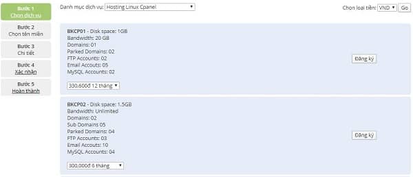 Tại bước này, bạn chọn gói dịch vụ phù hợp với nhu cầu và khả năng tài chính của mình. Và bấm “Đặt mua“