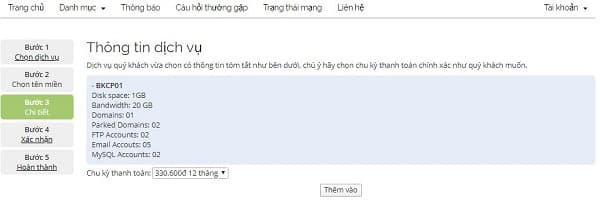 Bước 4: Bạn hãy chọn gói dịch vụ theo chu kỳ: 6 tháng, 12 tháng, 24 tháng hoặc 36 tháng. Sau đó click vào “thêm vào“