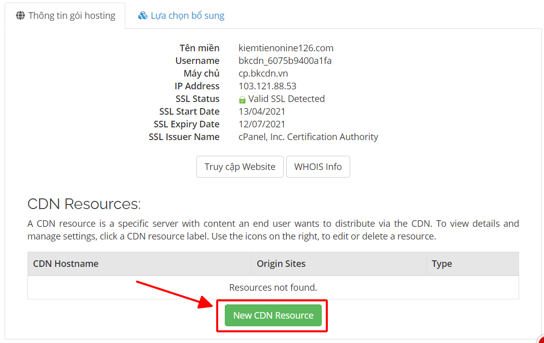 Xong các bước là các bạn đã tạo xong CDN Resouce cho website của bạn.
