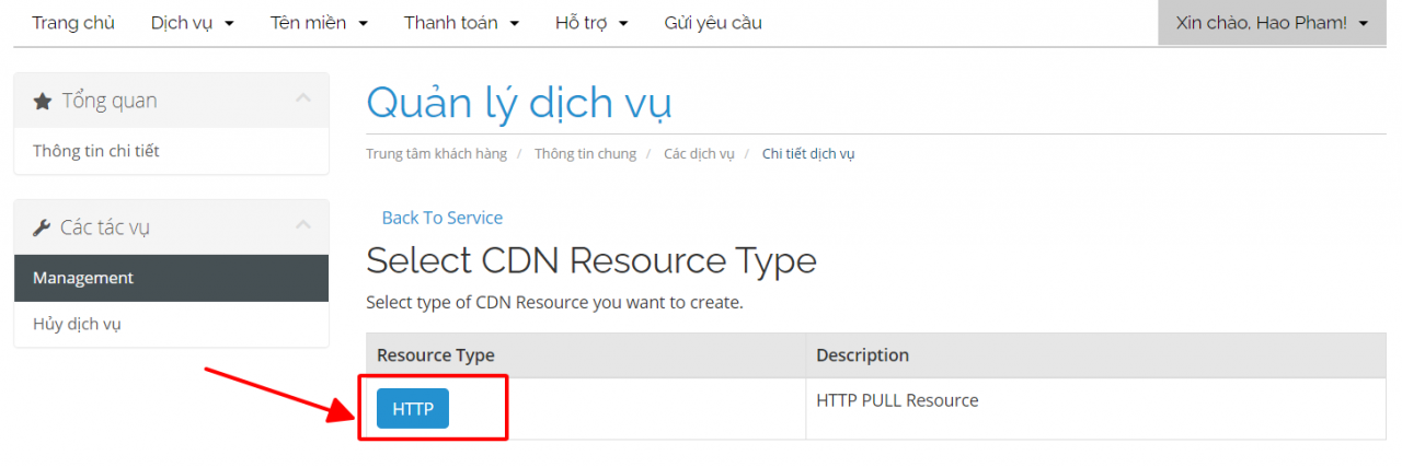 Bước 1: Đăng nhập vào quản lý dịch vụ CDN.