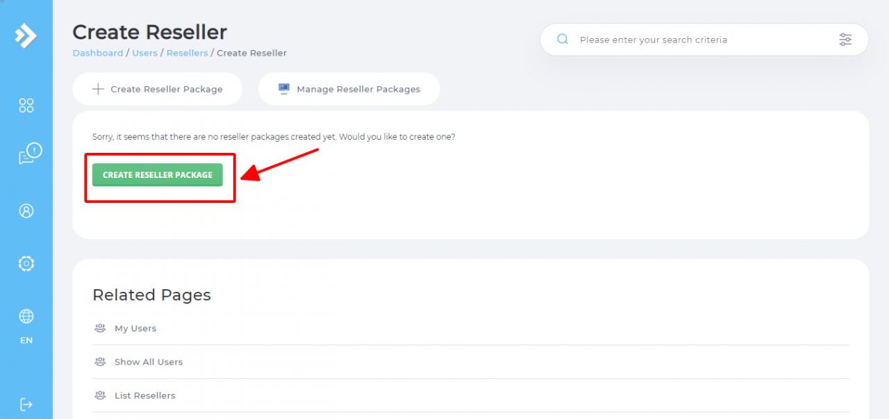 Bước 2: Từ trang chính của admin các bạn chọn Create Reseller.