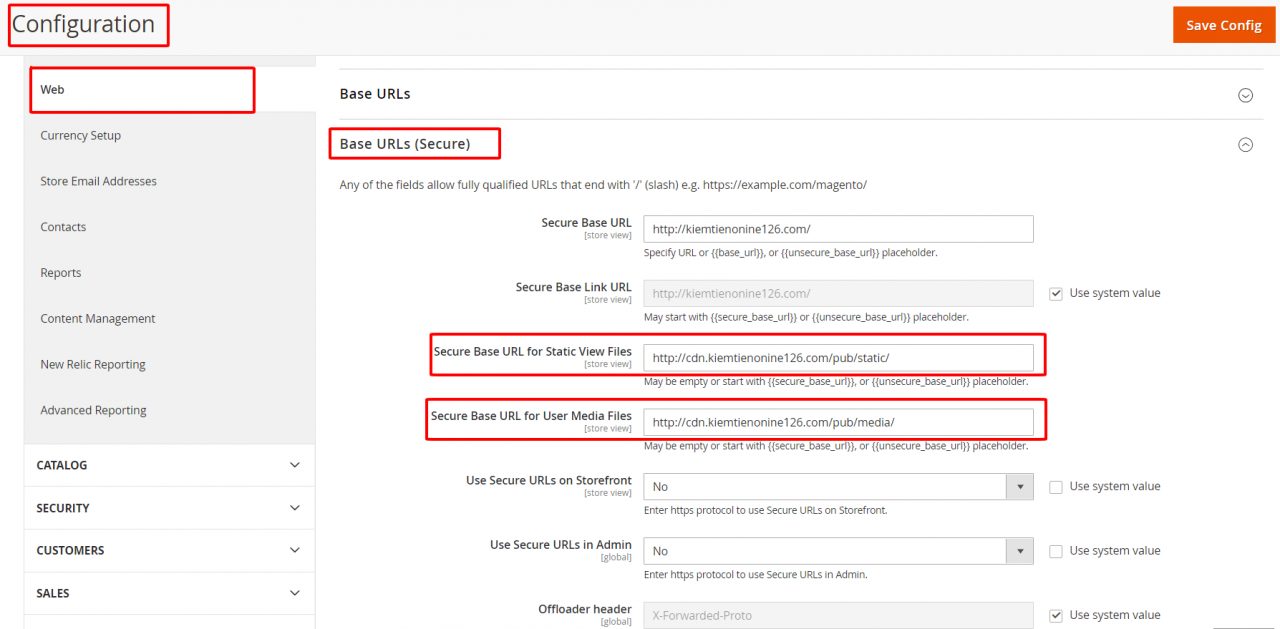 Base URL for User Media Files: http://cdn.yourdomain.com/pub/media/ (Đường dẫn CDN)