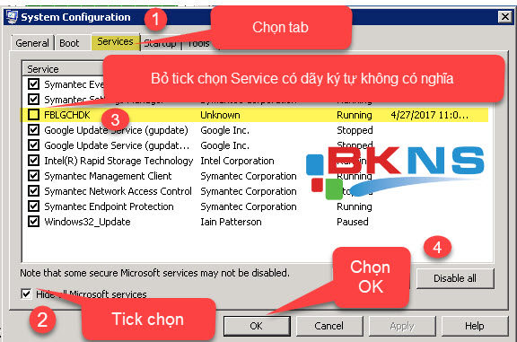 127.0.0.1 sls.microsoft.com - Nhấn Nút Windows + R để mở Run gõ Msconfig sau đó Enter và làm theo các bước sau: