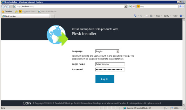 Bước 1: Download file plesk-installer.exe về. Run file với quyền Administrator, ta nhập user và password của OS Windows để login.