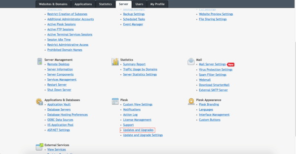 Bước 2: Trong giao diện Tool & Setting, ta chọn Update and Upgrades trong phần Plesk