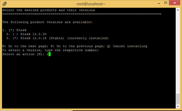 Bước 6: Ta sẽ có các bản Plesk để lựa chọn như Plesk 12.5.30, 12.0.18. Ở đây ta sẽ chọn bản Plesk 12.5.30 bằng cách chọn 2 và Enter, sau đó chọn N để tiếp tục