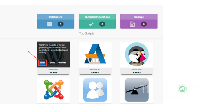 Bước 2: Truy cập vào biểu tượng WordPress và chọn Install