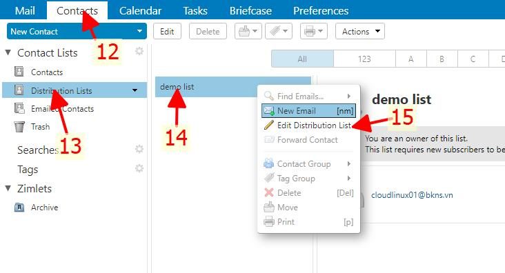 Tạo mail list (distribution list) và giới hạn user giửi vào zimbra
